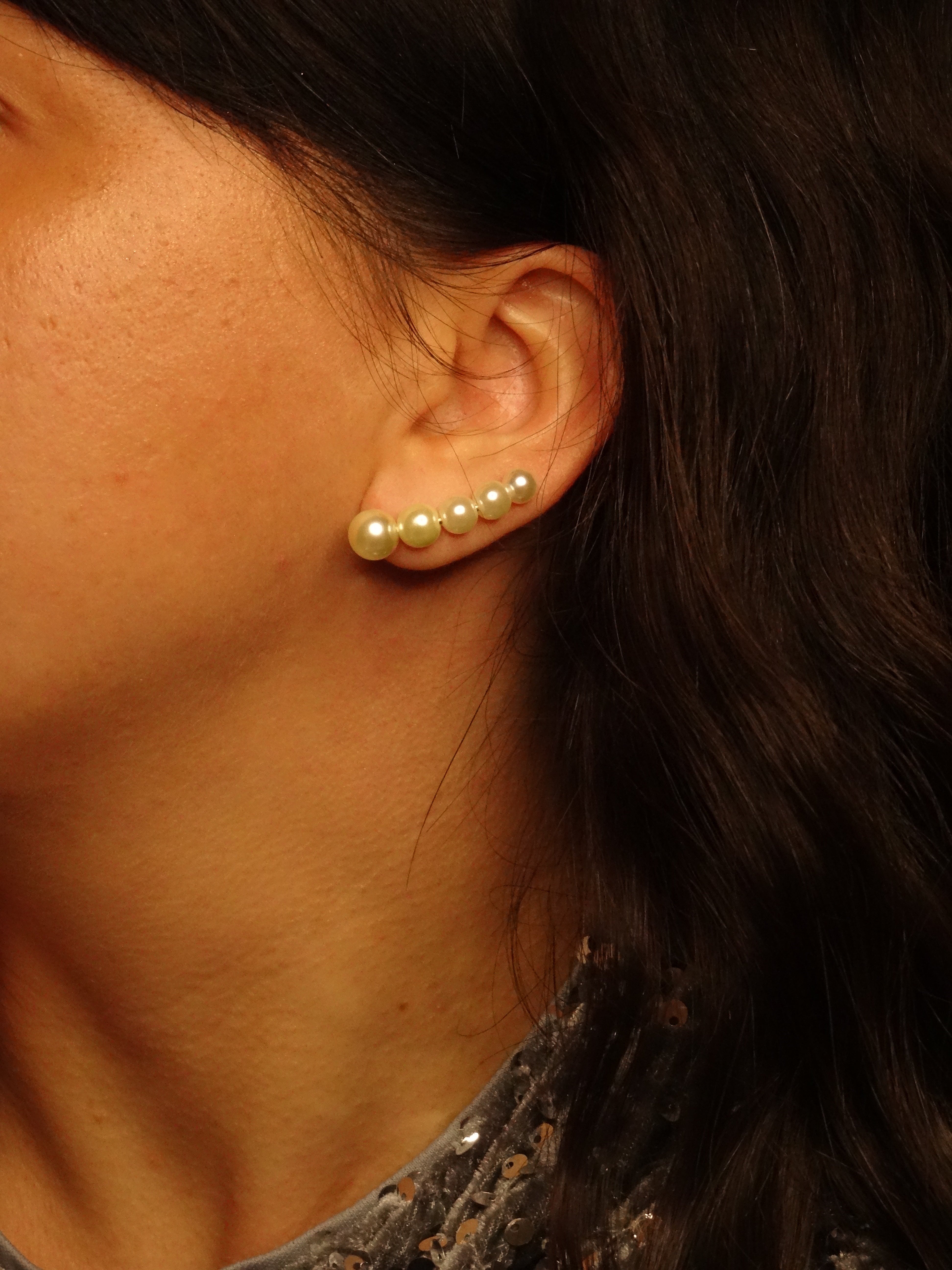 Boucles d’oreilles grimpantes en plaqué or ornées de perles d’eau douce.