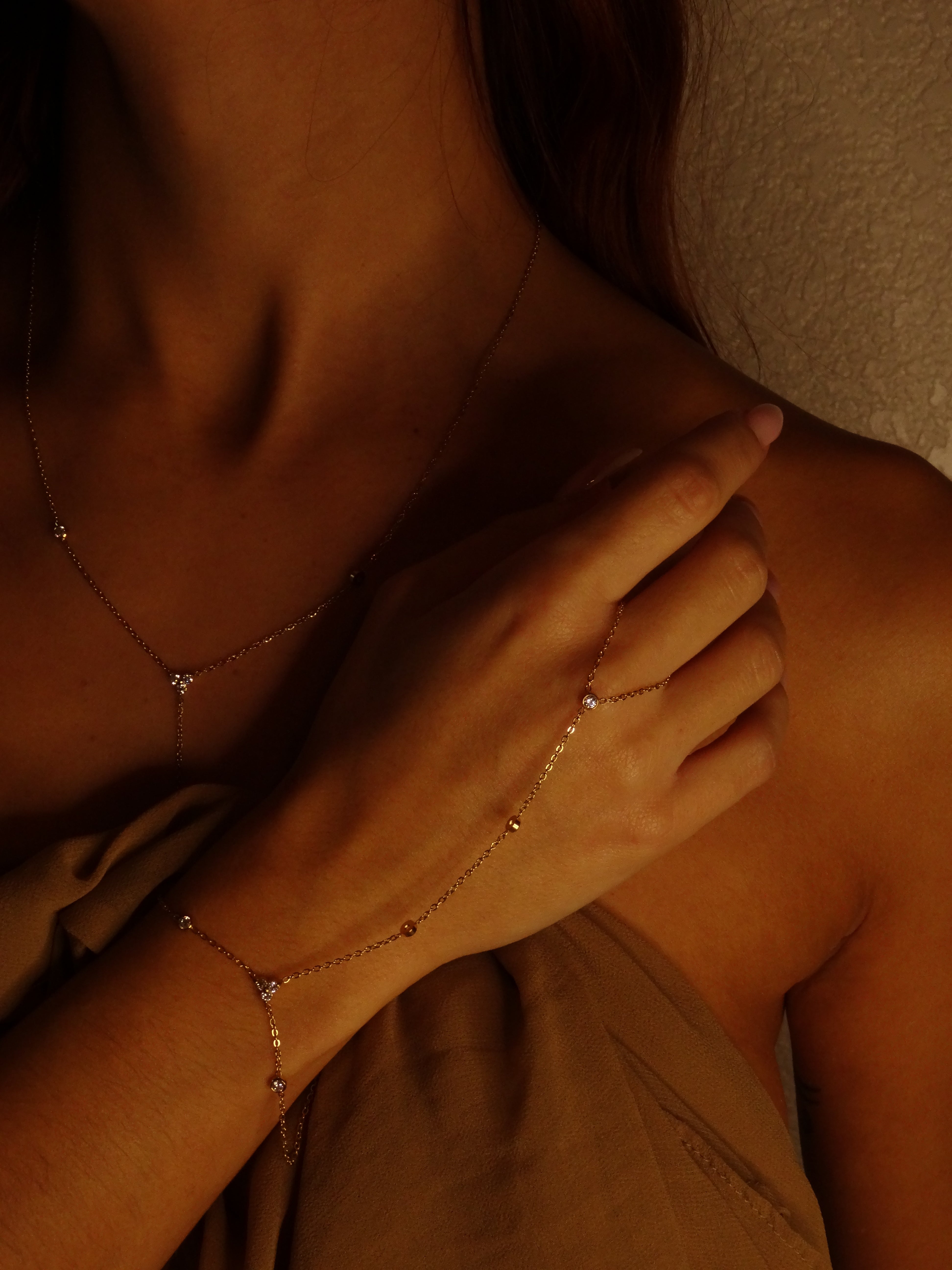 Bracelet de main en acier inoxydable avec zircons.